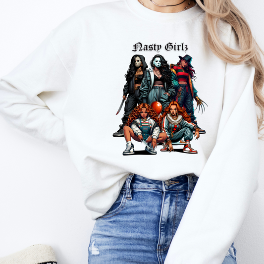 Nasty Girlz Horror Crewneck Sweatshirt – Fierce, Fearless & NOT Very Demure!