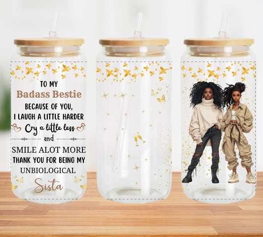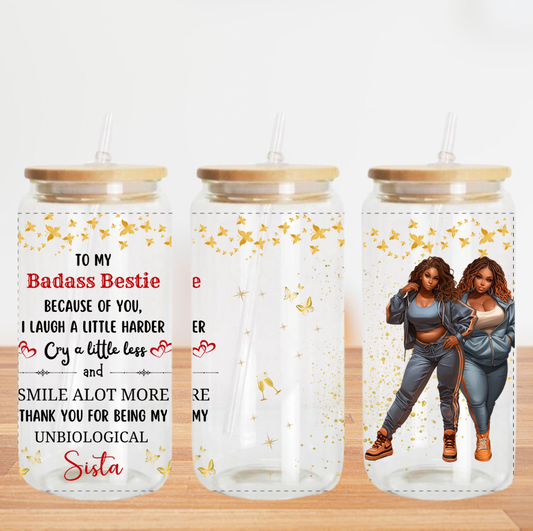 Badass Besties Brown Sparkles - Taza de vidrio CLARO